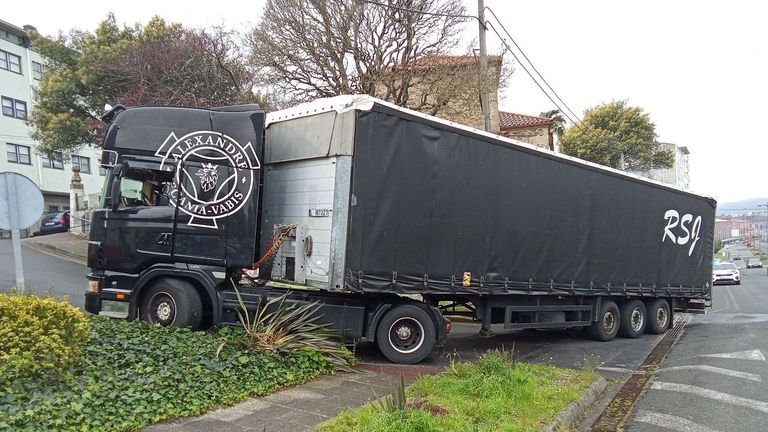 Otra jugada de un GPS: un camión portugués se queda atascado en Fene rumbo a Navantia