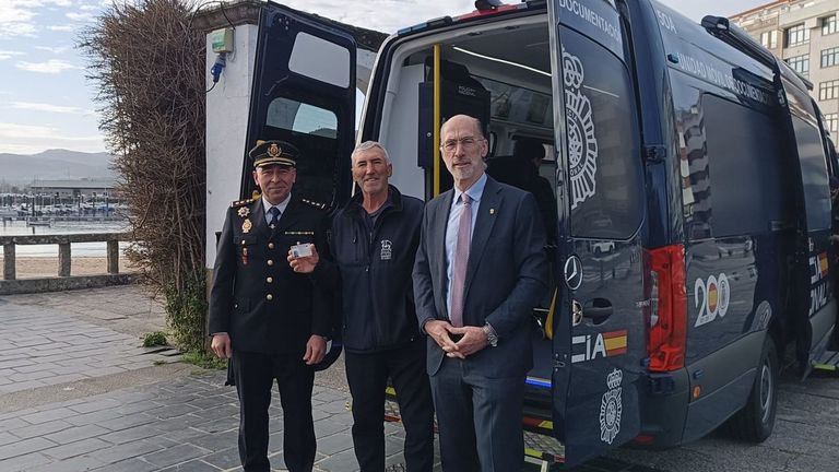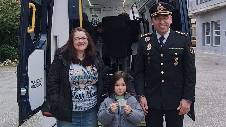 Un cangués de 5 años estrenó la unidad móvil de la comisaría de Vigo que expide documentos como el DNI en los municipios del sur de la provincia. El vehículo Vidoc de la Policía Nacional de Vigo echó a andar esta semana en Cangas y Baiona.