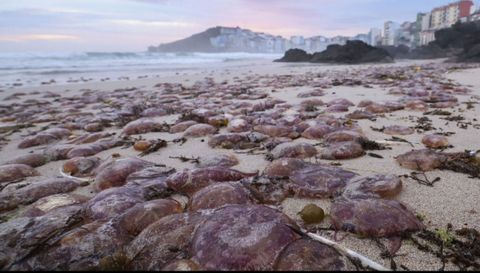 Respecto a la llegada de las Pelagia noctiluca, los expertos explicaron que es una especie habitual por estas fechas. «Todos os anos chegan. É moi doado velas por aquí. Son masas de auga oceánicas arrastradas», comentaron. Es de color rojizo, aunque los ejemplares juveniles pueden ir desde marrón claro a oscuro.