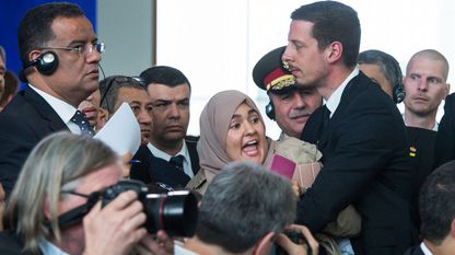 Una activista entró en la rueda de prensa gritando «¡Asesino!»