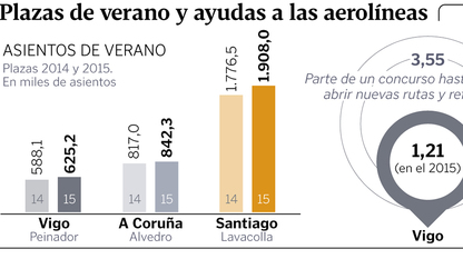 El aeropuerto de Vigo supera al de A Coruña en el incremento de billetes a la venta hasta octubre, aunque el coruñés mantiene una oferta global superior