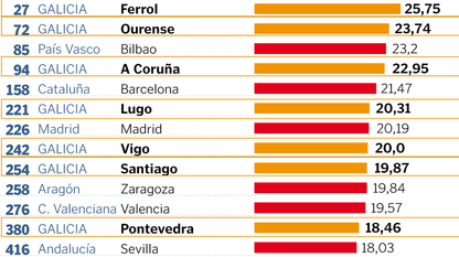 Un cuarto de la población supera los 64 años en Ferrol, Ourense y A Coruña, tasa que llega al 20 % en Lugo y Vigo
