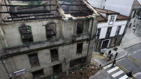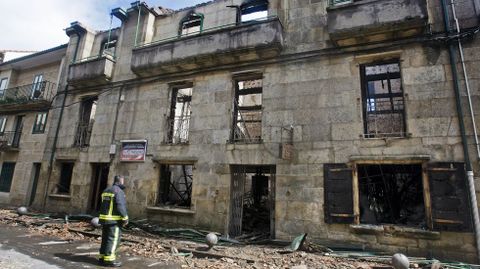El edificio de la tabera A Pía en ruínas tras el incendio