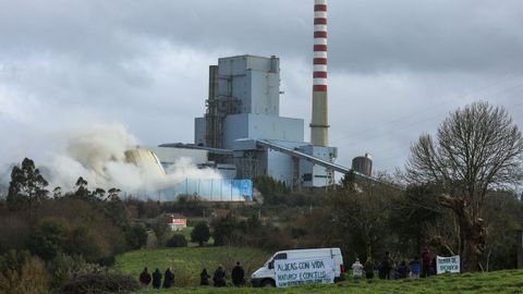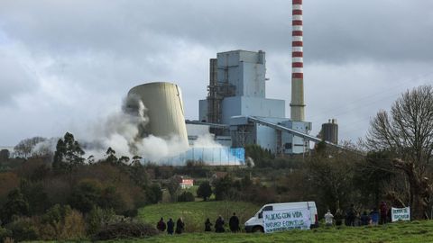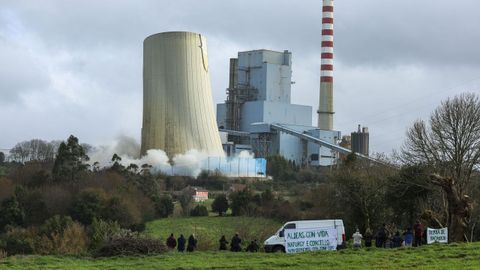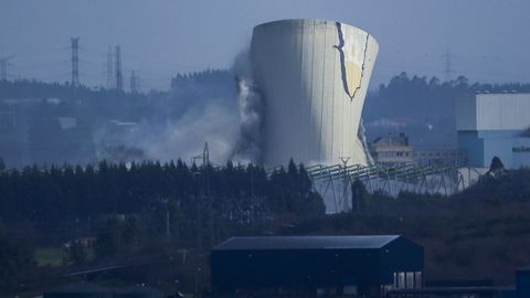 La voladura de la torre de refrigeración de Meirama, en imágenes