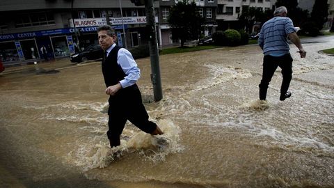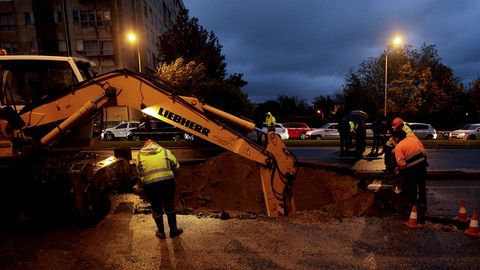 La rotura de una tubería provocó inundaciones y problemas en el tráfico en el cruce de Ronda de Outeiro con Pérez Ardá y en los accesos a Alfonso Molina