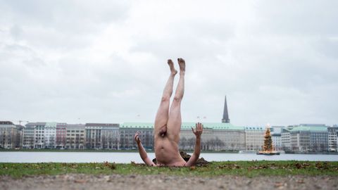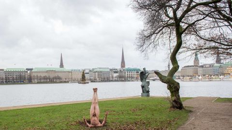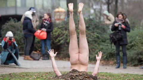 Un artista ruso realiza una peculiar «performance» en Hamburgo titulada «El fenómeno de la naturaleza o 99 paisajes con árboles»