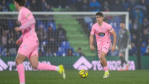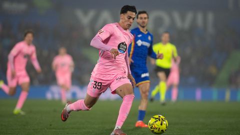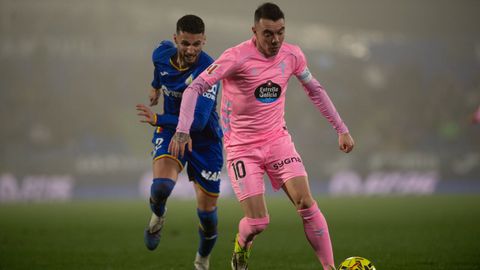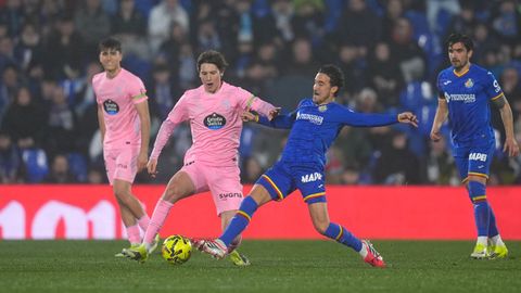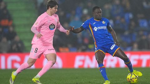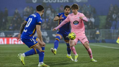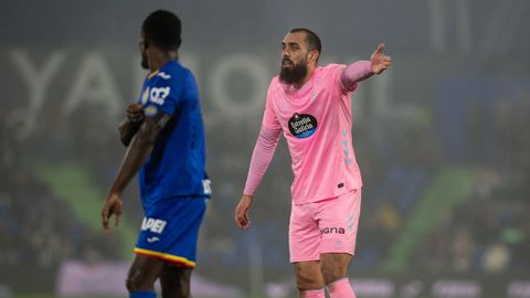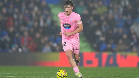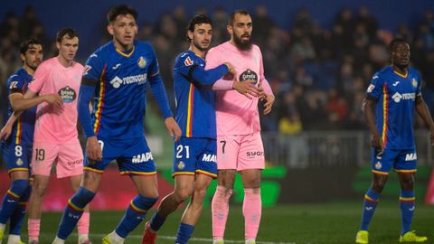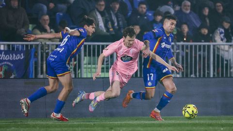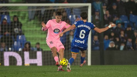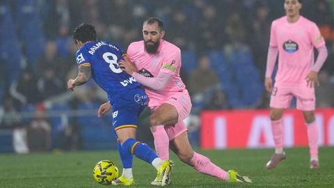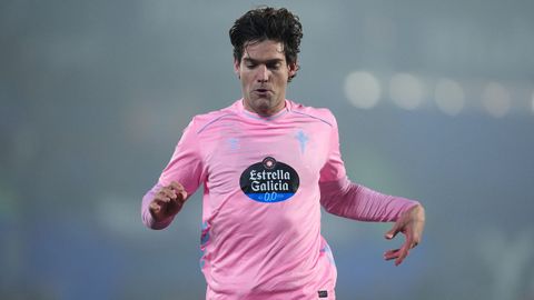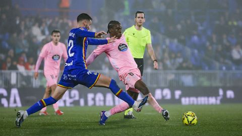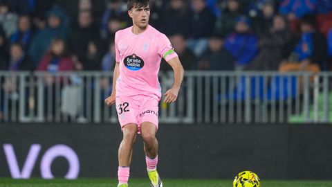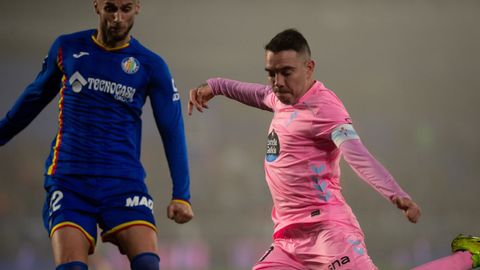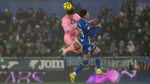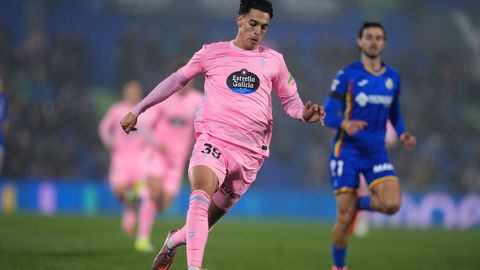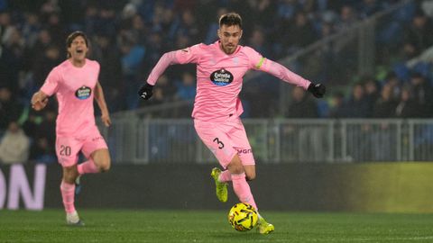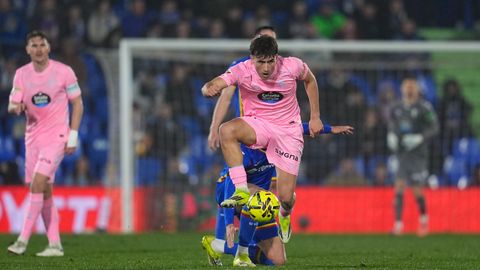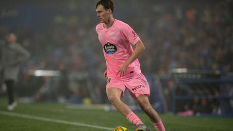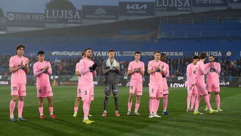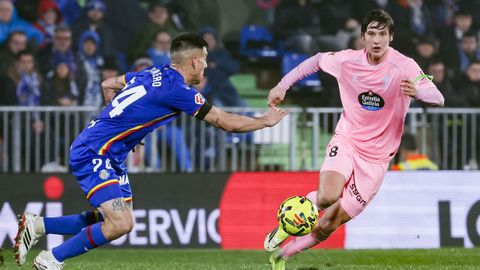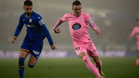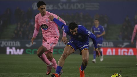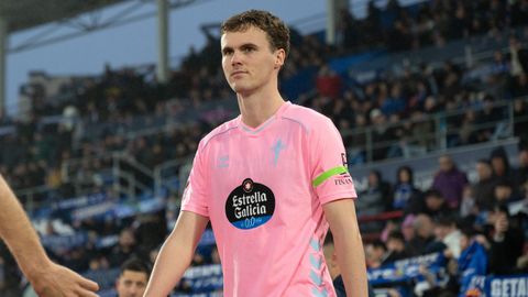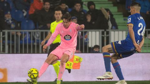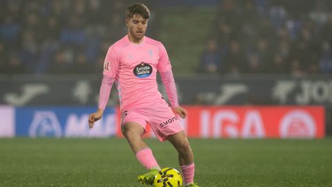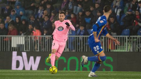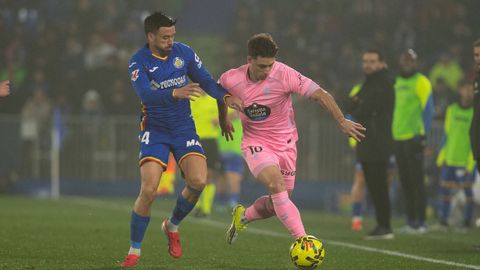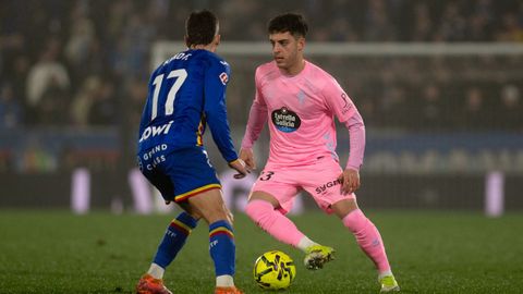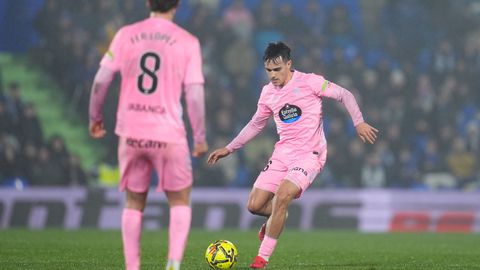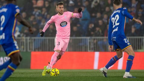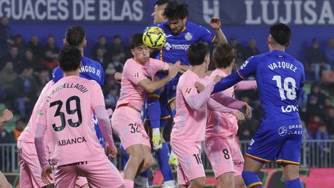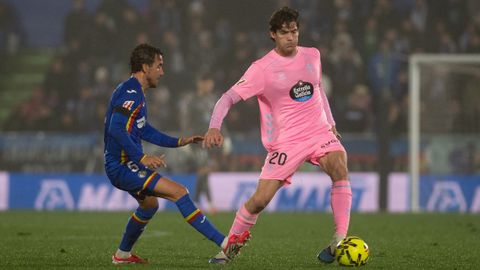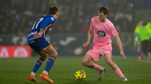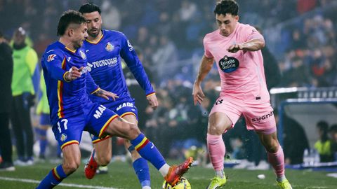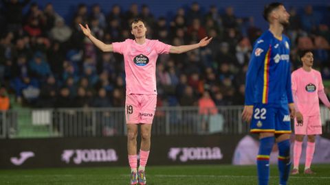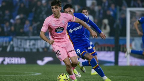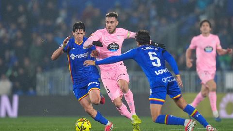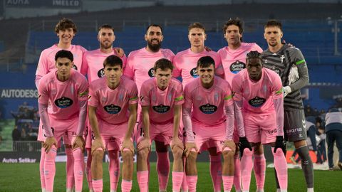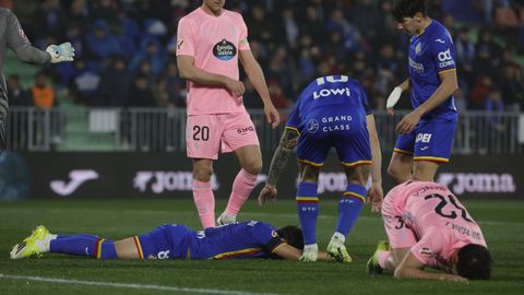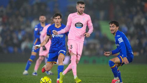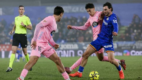 Los jugadores del Celta, tras una acción del encuentro ante el Getafe.