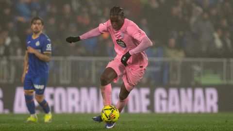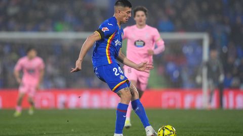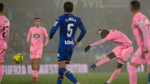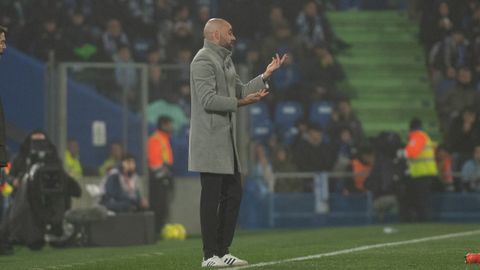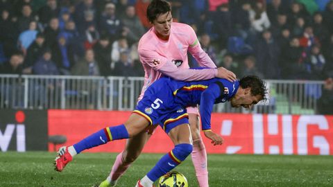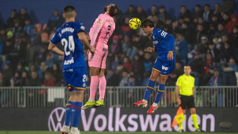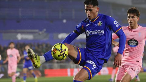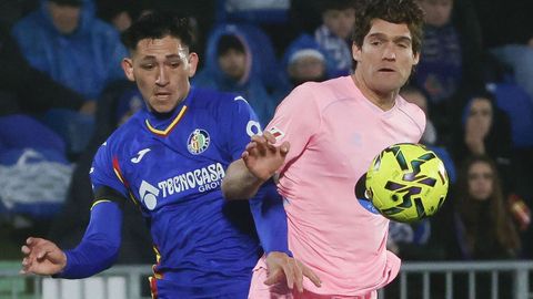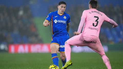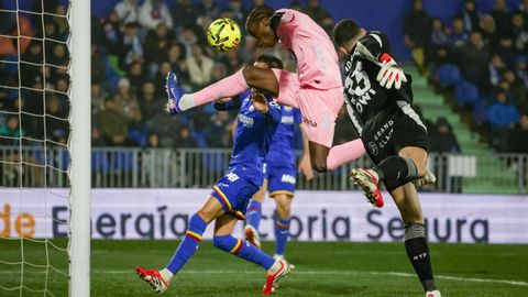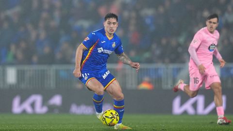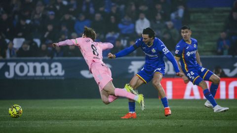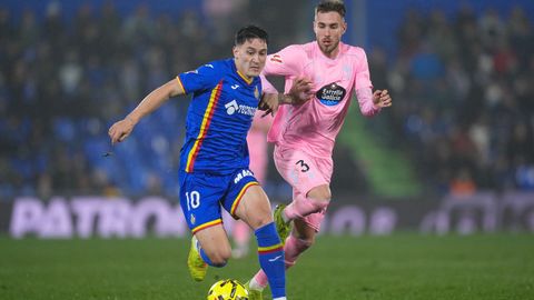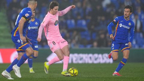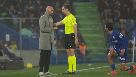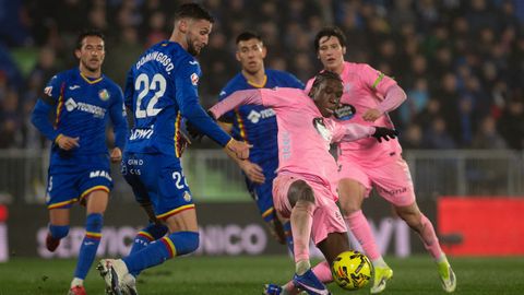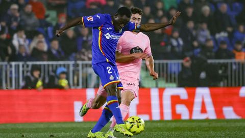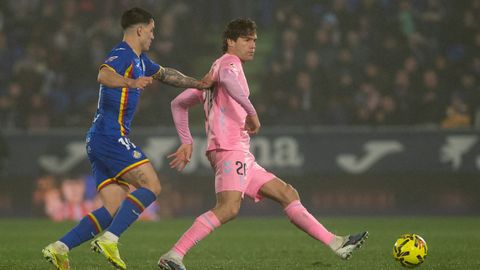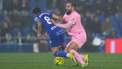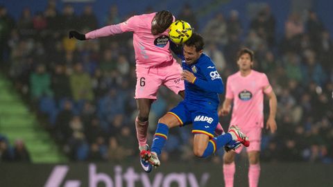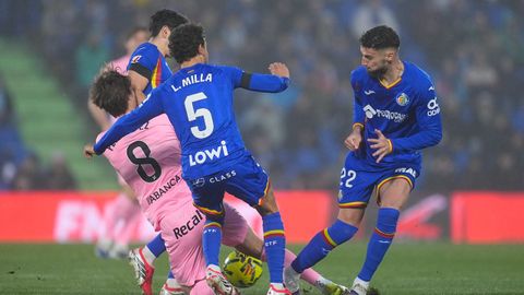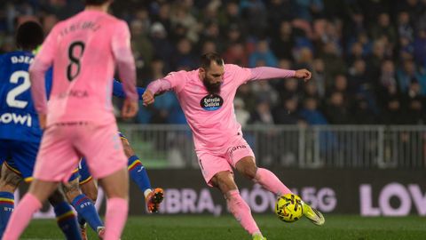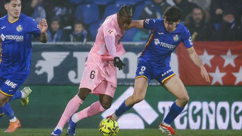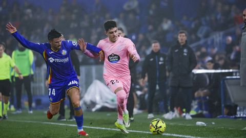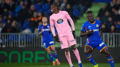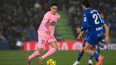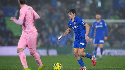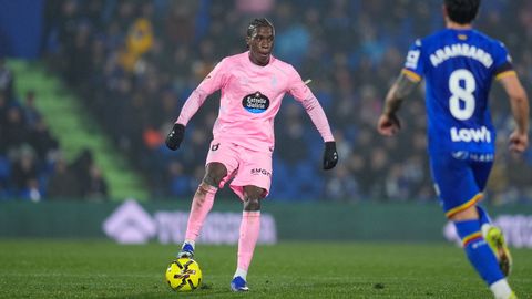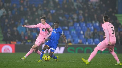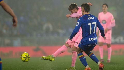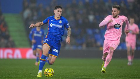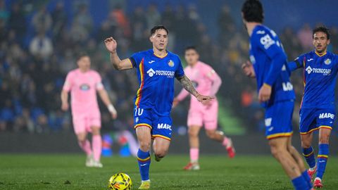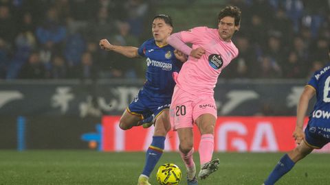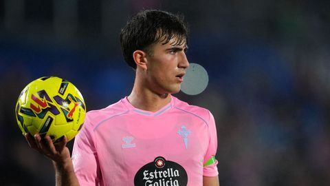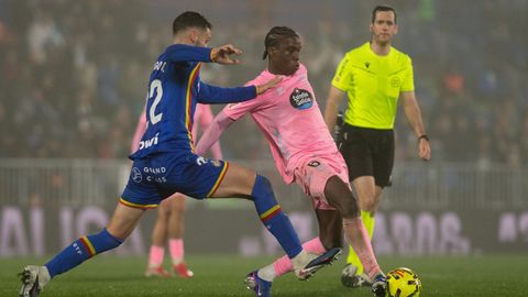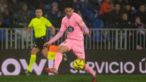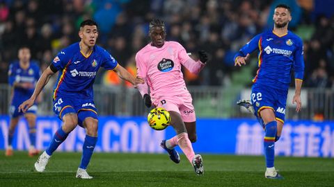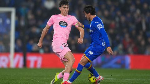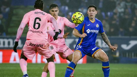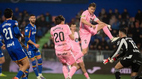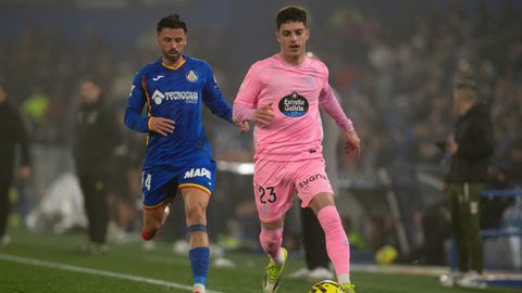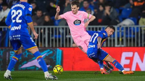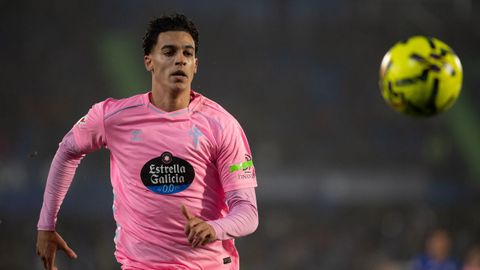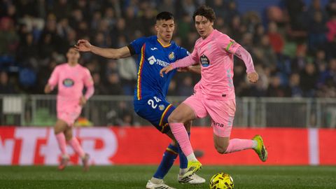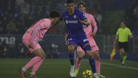 Los jugadores del Celta, tras una acción del encuentro ante el Getafe.