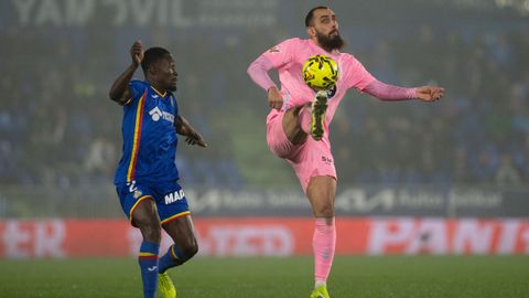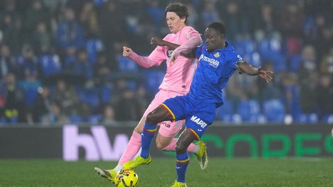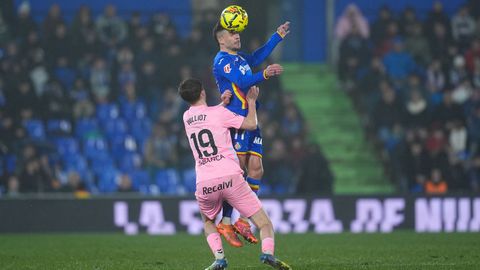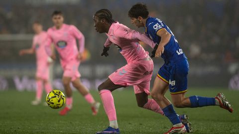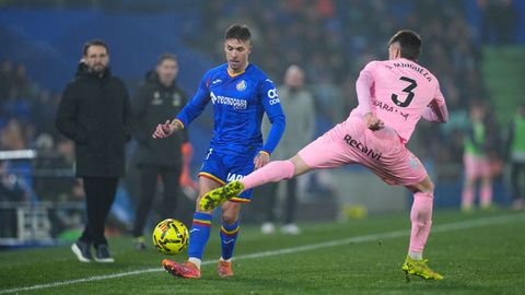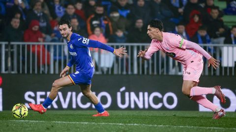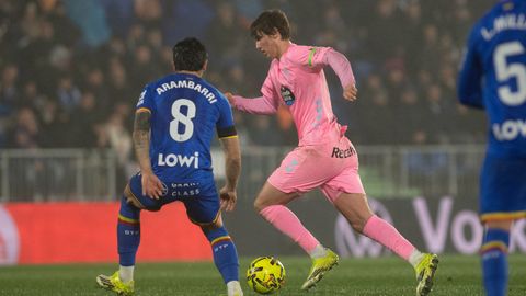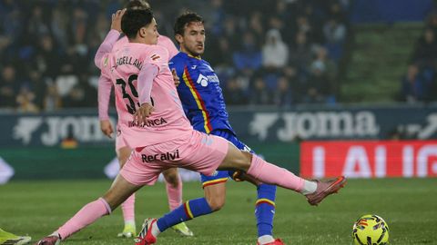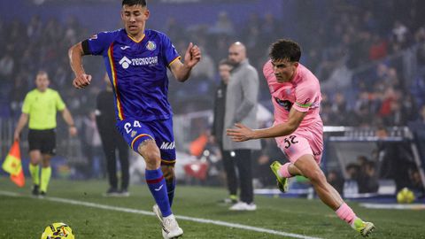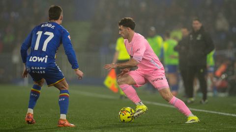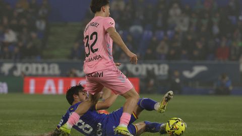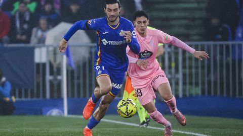 Ilaix Moriba (derecha), lamentándose de una acción junto a Luis Vázquez.