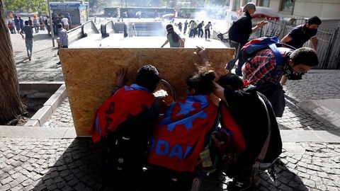 La Policía intenta disolver a los manifestantes con gases lacrimógenes y chorros de agua