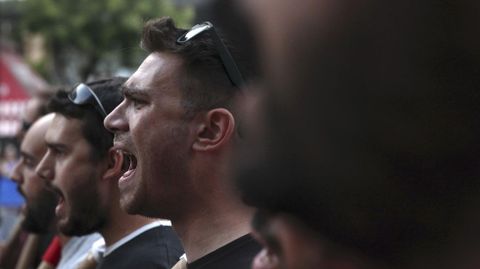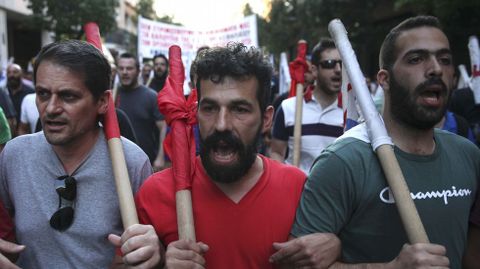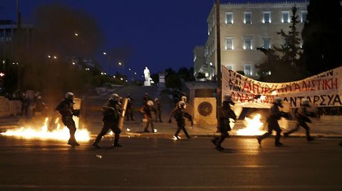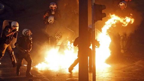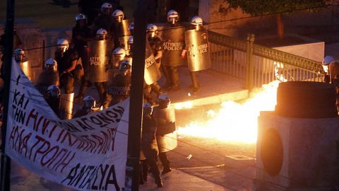 Un grupo de manifestantes arrojó cócteles molotov contra la policía. De forma pacífica, cientos de personas se reunieron en la Plaza Sintagma para protestar contra los ajustes sometidos a votación en el Parlamento