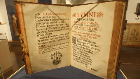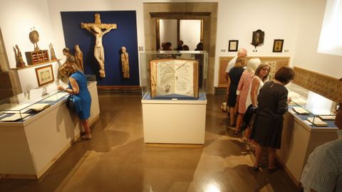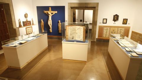 El Cristo y el libro. El Cristo de madera policromada de San Fiz de Cangas (principios del siglo XIV), y el llamativo libro de salmos de gran formato están ahora a la vista en la misma sala del museo, la dedicada a los libros religiosos de la época barroca de la biblioteca del convento.
