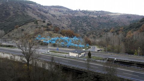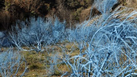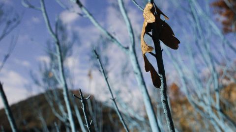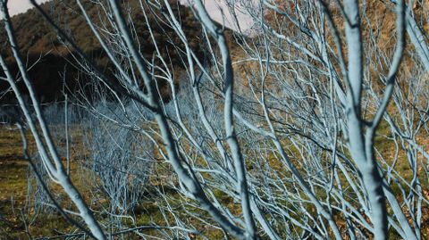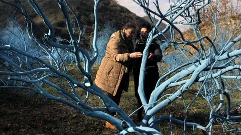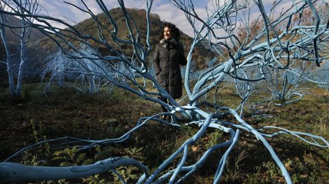 La artista Raquel Montero interviene en una parcela asolada por un incendio en Villafranca del Bierzo para crear una obra llena de color azul