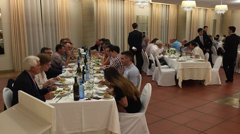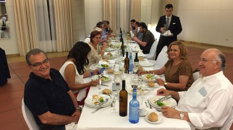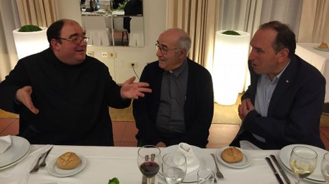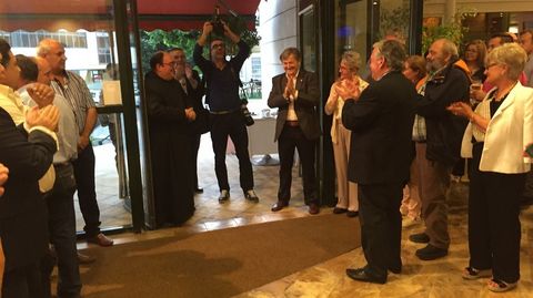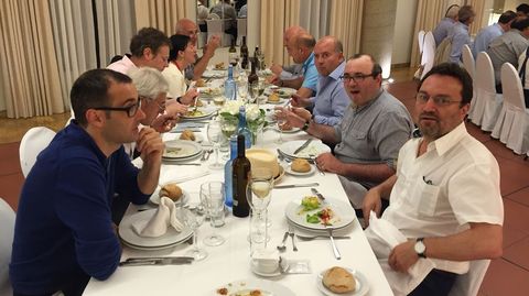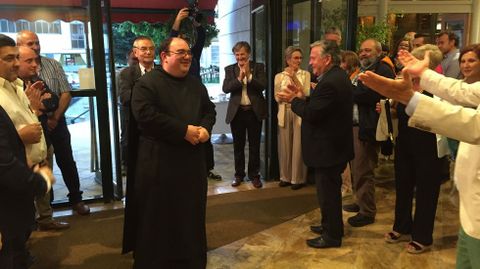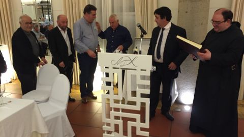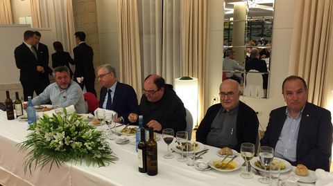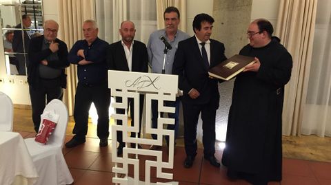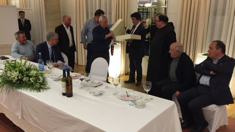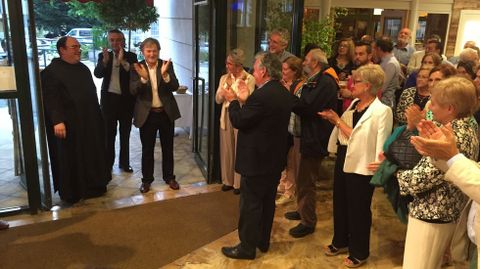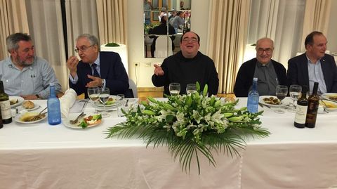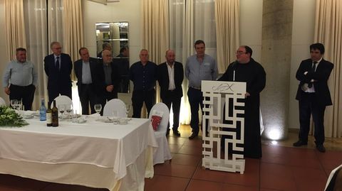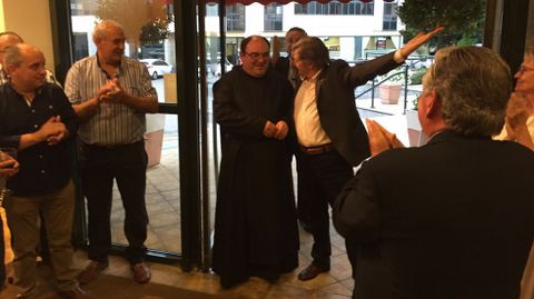 Alrededor de 150 personas participaronn en la despedida del prior de Samos José Luis Vélez, quien reconoció que no sabía nada y calificó el acto de «bombazo». Los asistentes le agasajaron con un viaje a Roma