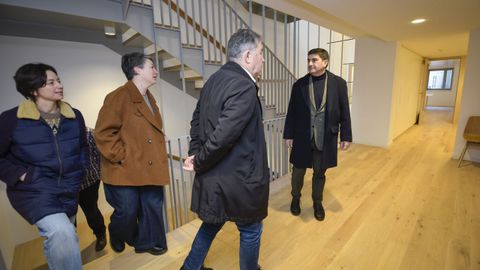 El alcalde de Pontevedra y el delegado del Gobierno en Galicia, este lunes, durante la visita al edificio rehabilitado de Churruchaos
