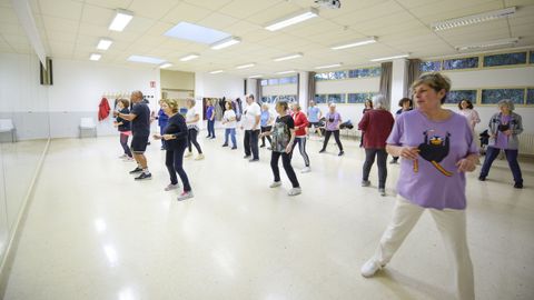 Uno de los grupos de bailoterapia del programa UNED Sénior de Pontevedra, en una clase en el centro asociado de Monte Porreiro
