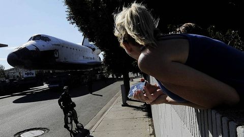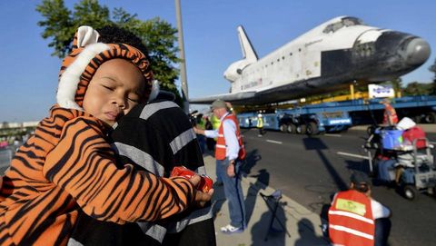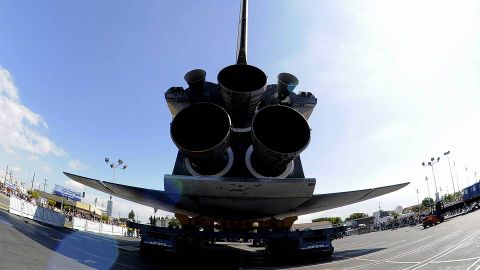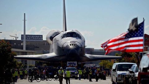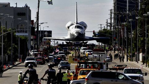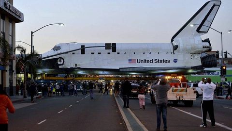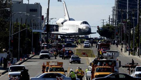 El transbordador espacial estadounidense inició su traslado al museo California Science Center a una velocidad inusual, 3,2 kilómetros por hora