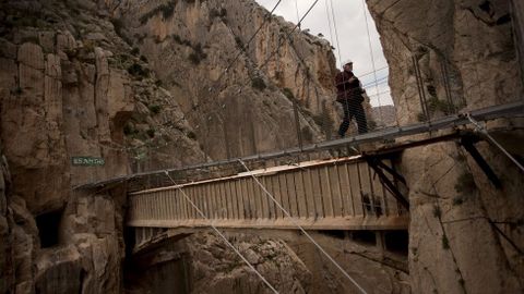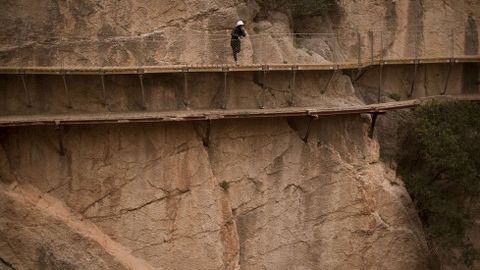 Restauran el «Caminito del Rey» que discurre por el Desfiladero de los Gaitanes entre altísimas paredes verticales. Las nuevas pasarelas abrirán al público el próximo 28 de marzo