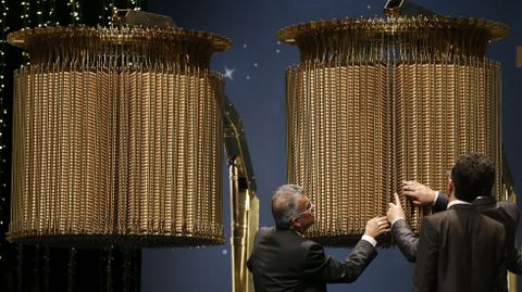 Los trajes con décimos son uno de los clásicos del sorteo del Gordo.