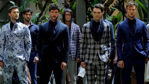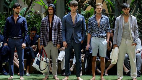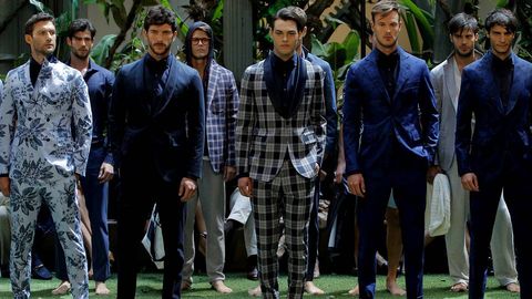 Camisas con estampados, chaquetas de colores o pantalones ceñidos son solo algunas de las claves del nuevo hombre que proponen las pasarelas. Lejos quedan los tiempos en los que las casas de moda apostaban por un estereotipo de «macho» que ha ido perdiendo fuelle a favor de unos «looks» para que ellas den su visto bueno sin poner una sola pega. Con esta idea siempre presente, Emidio Tucci abrió este lunes la tercera edición de la pasarela madrileña Mfshow Men con su colección primavera/verano 2015 para El Corte Inglés en la que han primado las flores y la vibración del color con una paleta desde el azul índigo, pasando por el arena hasta el naranja. «La moda no es solo para mujeres, el hombre se interesa por ella, y cada vez es más atrevido», explica el creador de la línea Piero Rosin. Eso sí, sin perder la seña de identidad de la firma: el buen vestir junto a los trajes y americanas de corte italiano