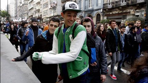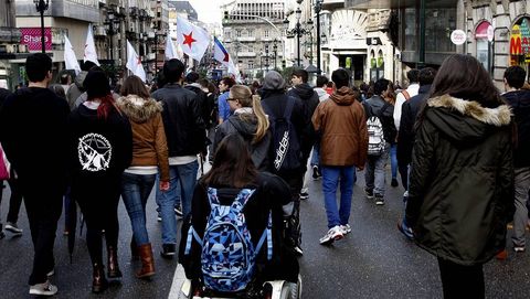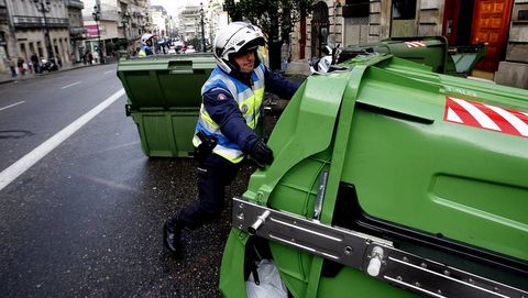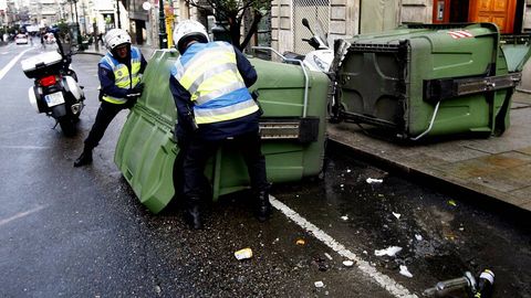 Algunos jóvenes volcaron contenedores durante la manifestación