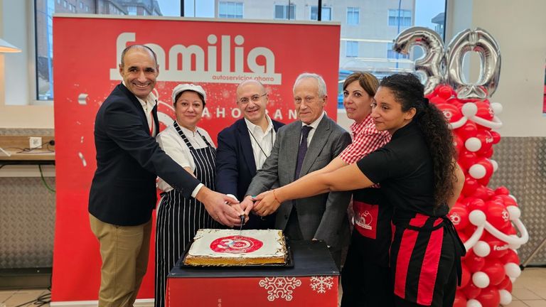 Representantes de la compañía han soplado esta mañana las velas del 30 aniversario de la enseña en un acto celebrado en el Autoservicios Familia Fonteculler, una de las últimas aperturas en Galicia, y en el que han participado el director general de Vegalsa-Eroski, José Manuel Ferreño; el director de Autoservicios Familia, José López Caamaño; el propietario accionista de Vegalsa-Eroski, Joaquín González y representantes del equipo de esta enseña, como Mónica Arévalo, charcutera; Rosalía Suárez, jefa de tienda; y Rosa Lanza, cajera-reponedora; entre otros.