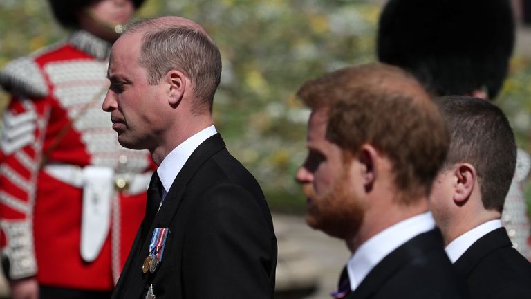 Muchos volvieron a ver hoy esa supuesta tensión al observar a los dos príncipes caminar separados durante el cortejo fúnebre tras el Land Rover que transportaba el féretro de su abuelo, el duque de Edimburgo. Entre ambos se colocó, como estipuló el protocolo, su primo Peter Philips, hijo de la princesa Ana y del capitán Mike Philips.