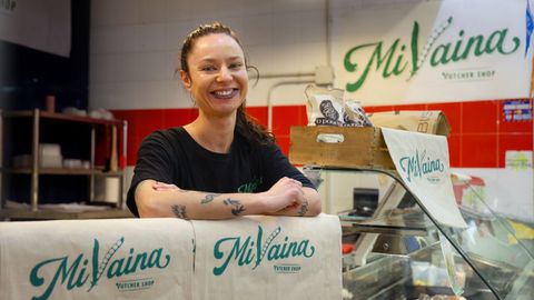 En su nuevo puesto del mercado de Elviña y en su primer local de la avenida de Finisterre, esta emprendedora investigadora ofrece albóndigas, raxo o zorza que no llevan nada de grasa animal