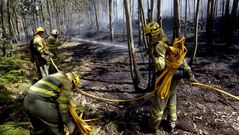 01 ago 2013 Bomberos y equipos de la Xunta apagan un incendio en Mesoiro El apoyo de un helicóptero fue clave para extinguir las llamas, que afectaron a una zona de monte bajo y eucaliptos próxima al cementerio de Feáns Xosé V. Gago