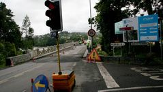 Las vallas en la glorieta de San Isidro, a escasos metros del Ayuntamiento de Bergondo, impiden el acceso a los propios residentes de la parroquia de Fiobre