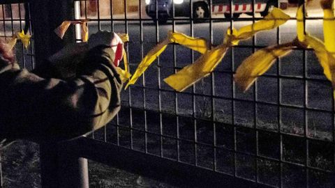 Cuando los líderes de Ciudadanos se fueron, los vecinos volvieron a colocar los lazos en la misma valla