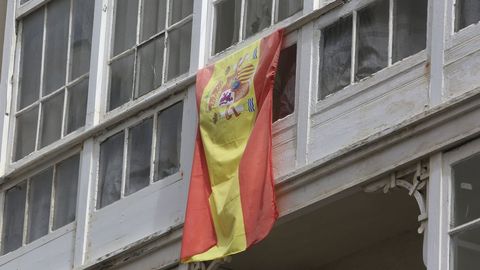 Uno de los momentos de tensión de la manifestación se ha producido cuando dos han tratado de subirse al andamio de un edificio municipal para colocar la bandera de España
