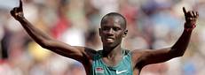 El keniata bate el récord olímpico al completar los 42 kilómetros con un tiempo de 1h06m32s.