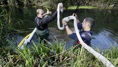 21 nov 2014 Los equipos de emergencias colocan barreras y mantas absorventes para frenar el vertido de gasóleo en el río de Lourenzá INMA EIROÁ