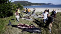 08 oct 2013 Son ya once más los calderones muertos varados en la playa de Arealonga, en O Vicedo, y en el río Sor El CEMMA confirmó que pertenecen al grupo de 22 cetáceos que comenzaron a varar ayer en la playa de Porto de Bares MAR G. BALSEIRO