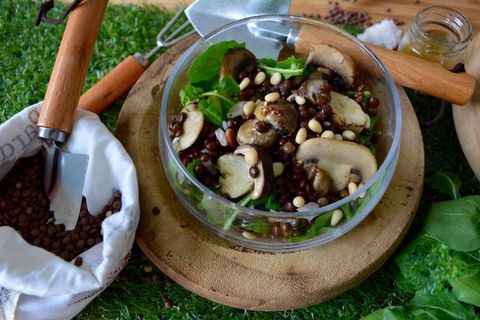 Combinar champiñones y boleuts edulis, acompañados de unos encurtidos y piñones, nunca había dado tan buenos resultados