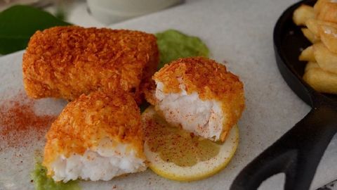 Esta tradicional combinación es menos «british» de lo que muchos puedan imaginar. Y menos en este caso, que con una buena merluza gallega y pimentón le damos el toque autóctono