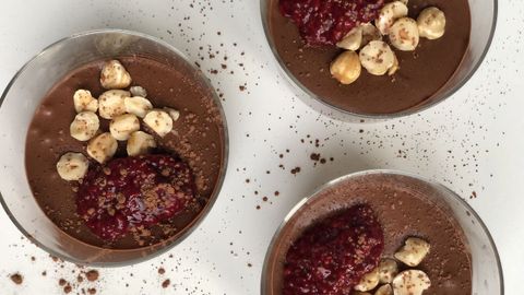 Con apenas un puñado de ingredientes, y sin necesidad de huevo, en pocos minutos tendremos este elegantísimo y saludable postre
