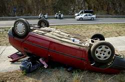 Aparatoso vuelco en la autovía A-6 en una jornada de intenso tráfico, aunque sin accidentes mortales