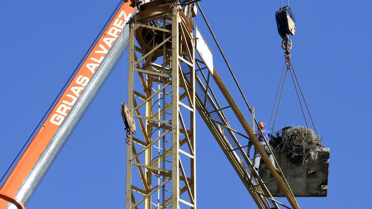 Una grúa retiró ayer el que fue hogar de una pareja de aves que había quedado sobre una grúa de obra abandonada