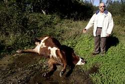 Crónica | Conflicto ganadero en Oroso El dueño del becerro, Ignacio Vázquez, se enfrentó a la firma encargada de la retirada del animal por el pago de 180 euros