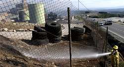 El fuego se inició en cuatro puntos distintos y afectó a tres hectáreas de matorral y pinar Los servicios de extinción sofocaron las llamas a apenas 150 metros de la factoría de Rubián