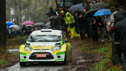 Jorge Cagiao, que sufrió un adelantamiento del canario Cruz esta mañana, reina de la prueba de casa, marcada por el volcado del coche de Antonio López Lence