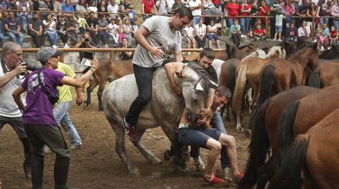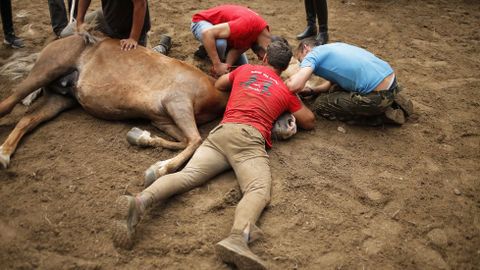 El curro no dejó ninguna incidencia, más allá de magulladuras y caídas, con las que ya cuentan los que saltan sobre los caballos. Si los equinos fueron menos que en ediciones anteriores, la respuesta del público fue muy buena. «É difícil de calcular canta xente pasou por aquí, pero máis que ningún ano», señaló el presidente de la asociación. En Amil espera en agosto la Festa do Porquiño á Brasa y en septiembre, la romería de Os Milagres.