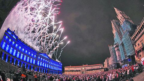 1. Fogos do Apóstolo. Como cada 24 de julio la plaza do Obradoiro servirá como escenario para un gran espectáculo nocturno, a las 23.30 horas, aunque es recomendable ir con antelación para coger sitio. Una tonelada de material pirotécnico acompañará al ya tradicional montaje audiovisual. La catedral, en pleno proceso rehabilitación, tampoco será este año el telón de fondo principal, sino el pazo de Raxoi (sede del Ayuntamiento).