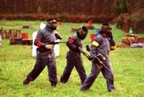 12 nov 2001 . Actualizado a las 06:00 h.PINTURA CONTRA EL ESTRÉS es la fórmula magistral y -al parecer- eficaz y muy divertida que la empresa Pim Pam Pum, ubicada en el municipio de Barreiros, ofrece a través del juego del «paintball». Sólo se requiere habilidad y estrategia para convertirse en campeón de este juego que, importado de Canadá -donde originalmente se usaba para marcar ganado-, consiste en lanzar y marcar con bolas de pintura al equipo contrario. Jóvenes de A Mariña dedicaron el fin de semana a practicar este juego, a jugar a la guerra, con estrategias, tomándoselo muy en serio, y liberar así adrenalina acumulada durante toda la semana. QUIEN SE MANTENGA MÁS LIMPIO GANA. La mecánica del paintball es sencilla: se juega entre dos equipos de hasta catorce jugadores, que eligen la modalidad -campo o monte- en la que disputar su guerra «sucia» particular. Trincheras y todo tipo de obstáculos en la opción de campo, que permite ver en todo momento al contrario, mientras que en la opción del monte la paciencia, para saber mantenerse oculto, es una gran baza. Es un simulacro de guerra en toda regla y que se toman muy en serio, aunque pueda parecer un juego un tanto curioso en los tiempos que corren. BOLAS DE PINTURA Y MARCADORAS PARA LANZARLAS son lo básico para jugar y, como el resto del equipo, formado por un mono y una máscara protectora para la cara, lo facilita la empresa. EL PAINTBALL NO TIENE RIESGOS, ya que las bolas usadas para pelear son inofensivas: colorante alimenticio, que se quita con agua, y plástico biodegradable. Cada vez son más los adictos a este modo de jugar a la guerra, ya que sólo durante el pasado fin de semana, la empresa de Barreiros organizó dos juegos: en la tarde del sábado -durante dos horas- y en la mañana del domingo -el doble de tiempo-. Concertar cita previa en el teléfono 647 565068 es el único requisito para jugar, quien se anime, claro, en adelante.