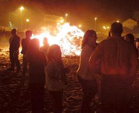 : LLOVIÓ DURANTE BUENA PARTE DEL DÍA , pero incluso el tiempo quiso respetar una de las fiestas con más tradición, la de la bienvenida al solsticio de verano. Y miles de mariñanos se reunieron anteanoche alrededor de las hogueras, para compartir un buen rato con amigos y conocidos e incluso para ahuyentar los malos espíritus con el fuego purificador. Un ritual ancestral que se renueva cada año, en los primeros minutos del día de San Juan, justo a medianoche, cuando las llamas y el humo reinan durante muchos minutos en la noche de las hogueras. : DE TODAS LAS QUE ARDIERON en prácticamente todos los rincones de la comarca, cabe mencionar la de la parroquia viveirense de Covas, que volvió a su escenario tradicional, la playa. Cientos de personas se acercaron para asistir, sorprendidas y agradecidas, al espectáculo del fuego, realzado en los momentos en los que las nubes permitían ver a una majestuosa luna llena. Mágicos instantes que niños, jóvenes, adultos y ancianos disfrutaron lo más cerca posible de la hoguera, buscando calor en una noche más propia del otoño por el viento y el frío. Viva más de dos horas, cuando perdió intensidad algunos lo aprovecharon para cumplir con el rito de saltarla. : PERO EL SAN JUAN DE COVAS ES MUCHO MÁS que la hoguera y, de hecho, mientras ardía la orquesta Emperadores interpretaba los típicos temas verbeneros que muchos aprovechan para marcarse un baile con su pareja. Las fiestas continuaron ayer, con diferentes actos a lo largo del día y una verbena amenizada por los grupos Abanico y Limón. Concluyen hoy, con la gran sardinada, que comienza a las ocho de la tarde, con el reparto gratuito de unos mil kilos de ese preciado pescado. Los gaiteros de Cacharela (Covas) y Brisas do Landro (Viveiro) amenizarán la merienda popular, prólogo de la última verbena, durante la cual tocará la orquesta Gales. : DONDE NO PUDIERON DISFRUTAR ANTEANOCHE de la hoguera que habían preparado con antelación fue en la parroquia viveirense de Vieiro. Una gamberrada propia de otras épocas echó al traste con el esfuerzo y la ilusión vecinales. A eso de las dos y media de la madrugada del domingo, la Policía Local de Viveiro fue avisada de que estaba ardiendo. Movilizaron a los servicios de extinción de incendios pero finalmente no fue necesaria su intervención. : DE ENTRE LAS NUMEROSAS HOGUERAS que hubo anteanoche en A Mariña también cabe citar las de Burela, San Cibrao, la parroquia ribadense de Ove, la focense de Vilaronte, la de A Pontenova, la de barrio mindoniense de Os Muíños, la de A Seara (Alfoz)... En fin, que hubo tantas y tan concurridas que sería imposible no olvidarse de alguna. Lo cierto es que todas brillaron pese a la lluvia del día.
