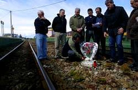 30 abr 2004 . Actualizado a las 07:00 h.Un ramo de flores fue depositado ayer por la tarde en la vía del ferrocarril en la estación de Feve de Ribadeo en recuerdo de las víctimas del atentado del 11-M. El acto fue organizado por la Unión General de Trabajadores (UGT), con motivo de la Fiesta Internacional del Trabajo, bajo el lema Pola paz, o pleno emprego e o benestar. Non ó terrorismo . El secretario xeral de UGT en la costa lucense, Lorenzo Fernández Posada, leyó un comunicado en el que recordó a las víctimas, la labor de los trabajadores en la complicada situación posterior al atentado y a continuación, centrándose en temas laborales, criticó la precariedad en el empleo, reivindicó medidas efectivas para sanear la costa tras el hundimiento del Prestige y abordó cuestiones más genéricas, como la guerra de Irak, que criticó, o el enfrentamiento entre Palestina e Israel, mostrándo el apoyo de UGT a la primera. Al acto asistieron una veintena de personas, la mayoría vinculadas al sindicato, el alcalde de Ribadeo, Balbino Pérez Vacas; los concejales Santiago Fernández Reinante y Carlos Pérez, y el secretario comarcal del PSOE y alcalde de Foz, José María García Rivera. El bipartito ribadense (PSOE-BNG) presentó ayer una moción en la que propone pedir al Gobierno que condene los hechos que culminaron con la muerte del reportero de Tele 5, estrechamente vinculado a Ribadeo que se conozca su labor profesional, y que se abra una investigación y haga un juicio por el «crimen».