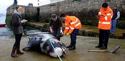 06 abr 2005 . Actualizado a las 07:00 h.Dos cetáceos aparecieron muertos ayer en dos zonas diferentes de la comarca. Por una parte, un calderón hembra, adulto, de 4,18 metros de longitud fue localizado flotando frente a la ría de Viveiro. Por otra, un delfín de 1,5 metros apareció varado en la playa de Arealonga, en Barreiros. A media tarde, miembros de la Coordinadora para o Estudo dos Mamíferos Mariños (Cemma) le realizaron la necropsia al delfín, que llevaba un par de días muerto y no presentaba ningún indicio externo sobre las causas de su fallecimiento, explicó Alfredo López, presidente del Cemma. La intención era que Protección Civil se hiciese cargo del animal. Desde las proximidades de la ría de Viveiro, el calderón fue remolcado por la lancha Salvamar Sargadelos al puerto de San Cibrao, donde esperaban efectivos de Protección Civil de Cervo. Pasadas las ocho de la tarde, lo arrastraron a la rampa de varada de barcos para que miembros del Cemma analizasen un cetáceo que no parecía llevar mucho tiempo muerto. Si no se hacía de noche antes, Protección Civil de Cervo preveía cargarlo en un camión y enterrarlo.