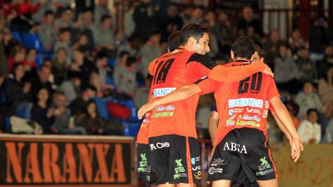 Burela: Edu, Isi, Bellvert, Iago Rodríguez, Chino -quinteto inicial-, Chano, Iago Míguez y Antoñito